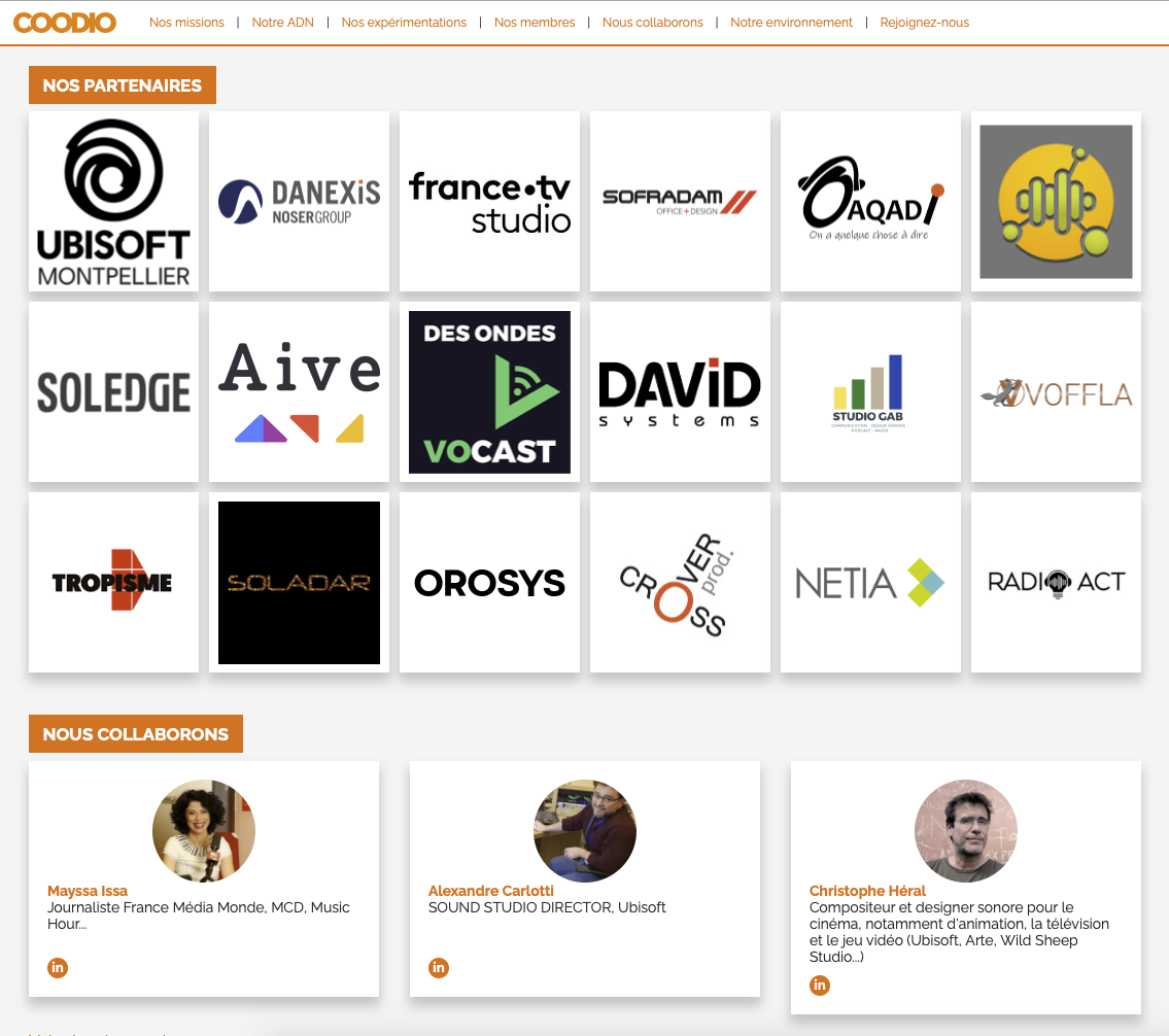 A la conjonction de la création, des technologies et des usages, COODIO a pour vocation de favoriser les synergies dans des domaines tels que radio, podcasts, livres audio, Intelligence Artificielle, assistants vocaux, effets sonores, datas, animation, etc.